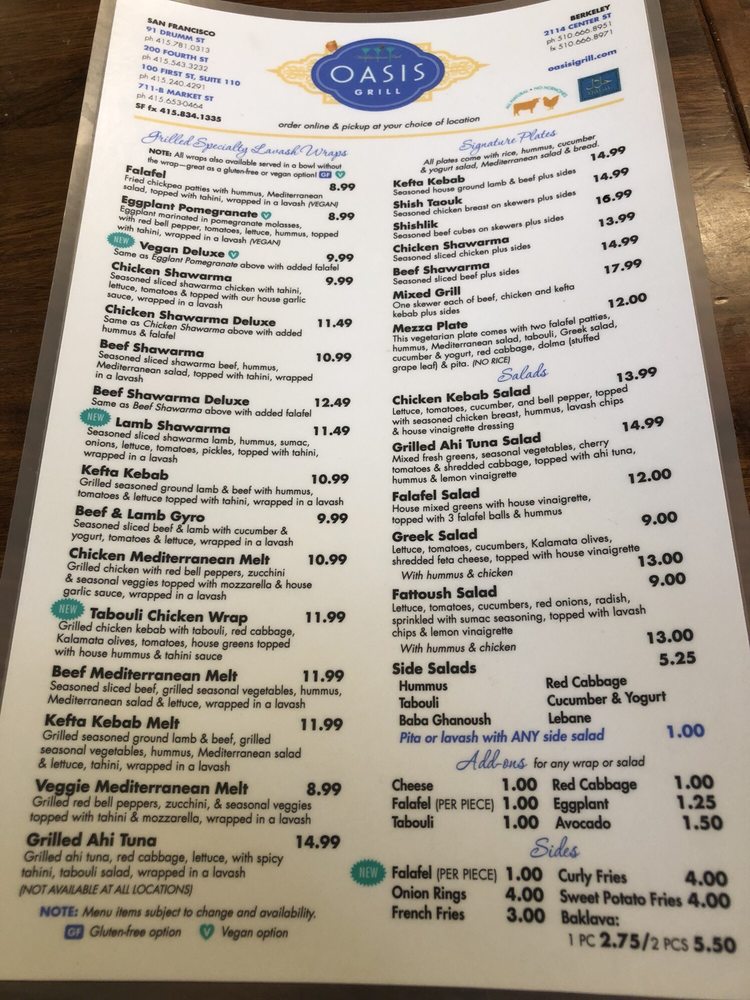 Introducing Oasis Grill, located at 711B Market St in San Francisco, a Mediterranean gem that stands out for its impeccable dishes and top-notch service. Customers rave about the juicy kefta and chicken, perfectly seasoned falafel, and fluffy rice and quinoa. The menu offers a wide range of vegan and vegetarian options, catering to different dietary preferences. The staff goes above and beyond to ensure customers are satisfied, with one customer even receiving complimentary dishes due to a mix-up. Oasis Grill's friendly atmosphere, delicious food, and exceptional customer service make it a must-visit spot in downtown San Francisco for a taste of authentic Mediterranean cuisine.